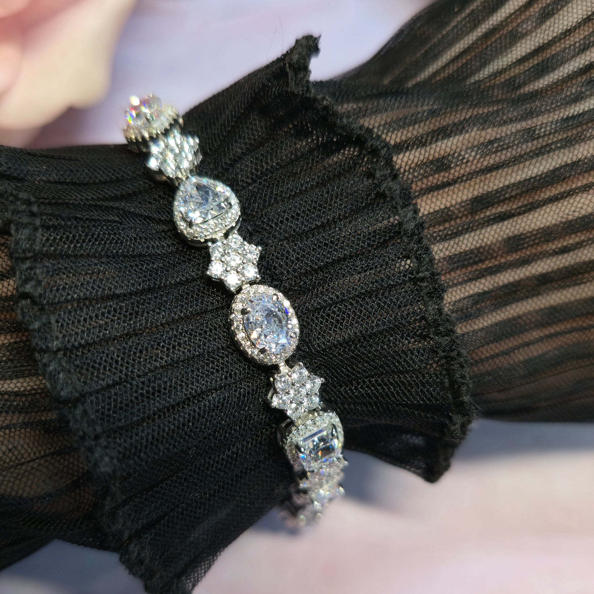 Bransoletka srebrna rodowana bogato zdobiona cyrkoniami Queen’s Diamond Empire