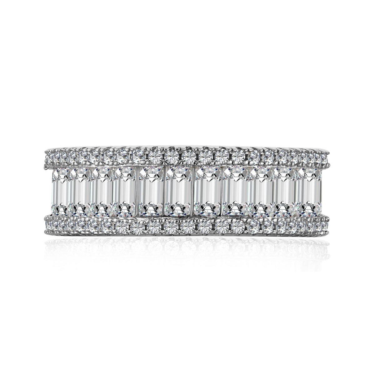 Srebrny pierścionek 'Luminary Brilliance' jest prawdziwym arcydziełem w świecie biżuterii. Jego starannie wykonana obrączka jest ozdobiona łącznie 132 cyrkoniami klasy AAAAA, o schodkowym i promienistym szlifie, każdy detal tej biżuterii emanuje doskonałością. Srebrna rodowana konstrukcja nadaje jej solidności, podczas gdy błyszcząca powierzchnia doskonale mieni się w świetle, przyciągając wzrok i dodając wyjątkowego uroku.